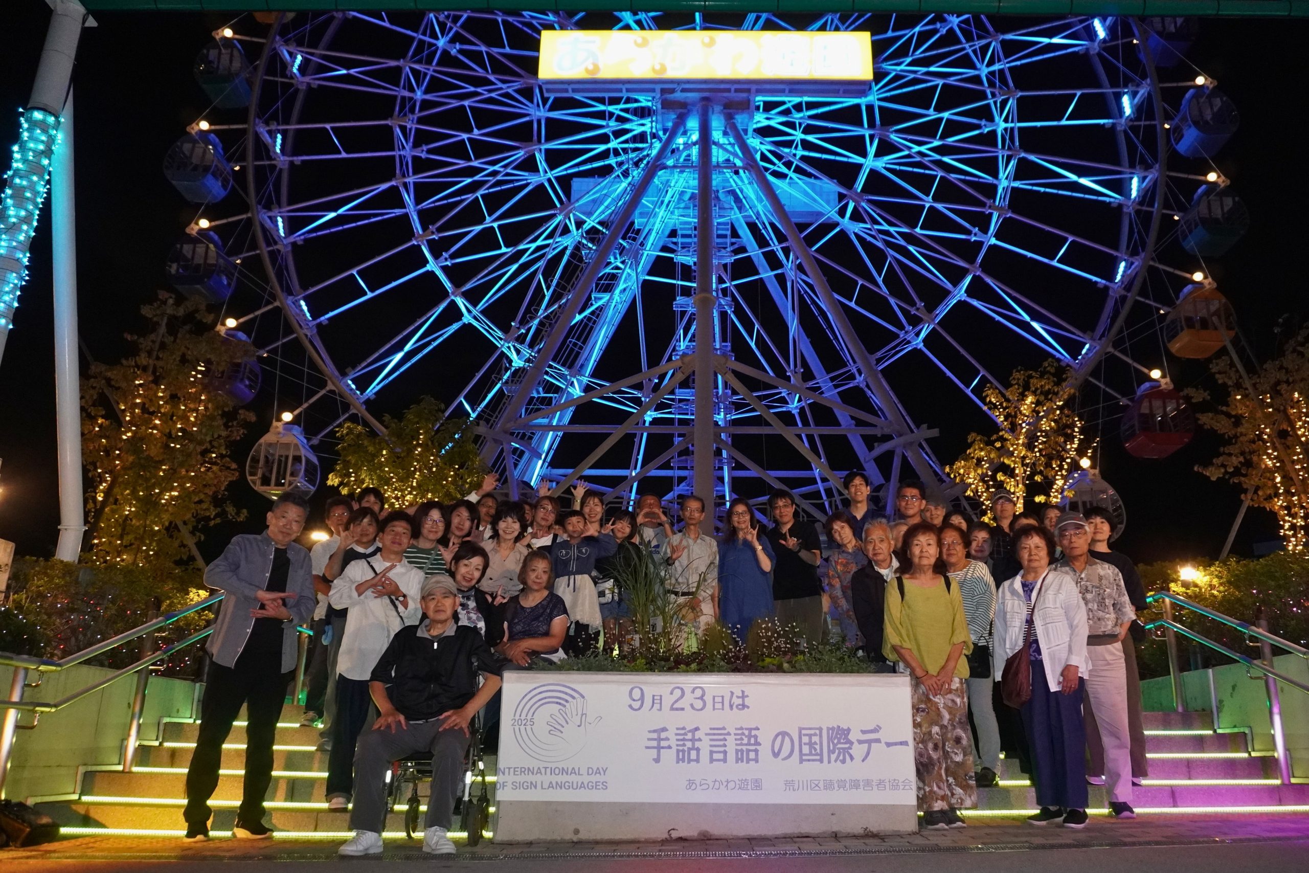 2025年9月23日に東京都庁前にある都民ホールにて、「手話の日制定記念事業 手話の日記念の集い 東京2025」を開催しました。当日はホールの定員を超える多くの方々にご参加いただき、都内各区市でもブルーライト投影などが行われました。